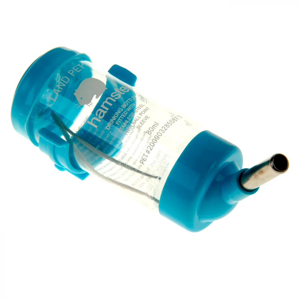 Прозрачная и компактная. При помощи специального крепления изделие легко и надежно крепится к прутьям любого типа, а металлический наконечник с шариком делает процесс питья максимально комфортным для питомца. Просто наполните поилку свежей водой, плотно закройте крышку и переверните носиком вниз. Очень прочная и легкая в эксплуатации, эта поилка выполнена из нетоксичного пластика, поэтому абсолютно безвредна для грызунов.