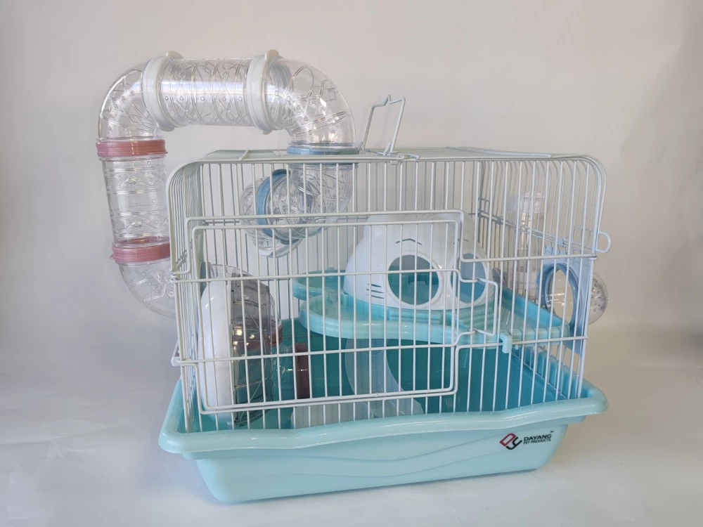 Яркая клетка прямоугольной формы с внешними тоннелями-переходами. Такая клетка - целый развлекательный комплекс для грызуна, который занимает немного места и отлично подходит для мелких домашних животных вроде крыс, мышей и хомяков. В комплектацию изделия также входят: пластиковая миска, поилка, уютный домик и беговое колесо. Размер изделия: 35*26*27см.