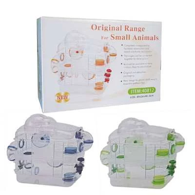 Двух этажная клетка с тоннелем. Оснащена беговым колесом, шаром, поилкой, кормушкой и трубой. Характеристика: Высокое качество пластика. Размер: 40*26*48,5см О бренде: Страна производитель: Китай {/tabs