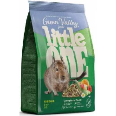 Little One корм «Зеленая долина» для дегу— корм для декоративных животных, в состав которого входит 60 разновидностей трав. Изготовленный с помощью специальной технологии холодного прессования, корм сохранил все витамины, минералы и другие ценные питательные вещества, входящие в состав растений. Корм богат длинными волокнами клетчатки, что обеспечит необходимый уход за зубами и правильное пищеварение у дегу.