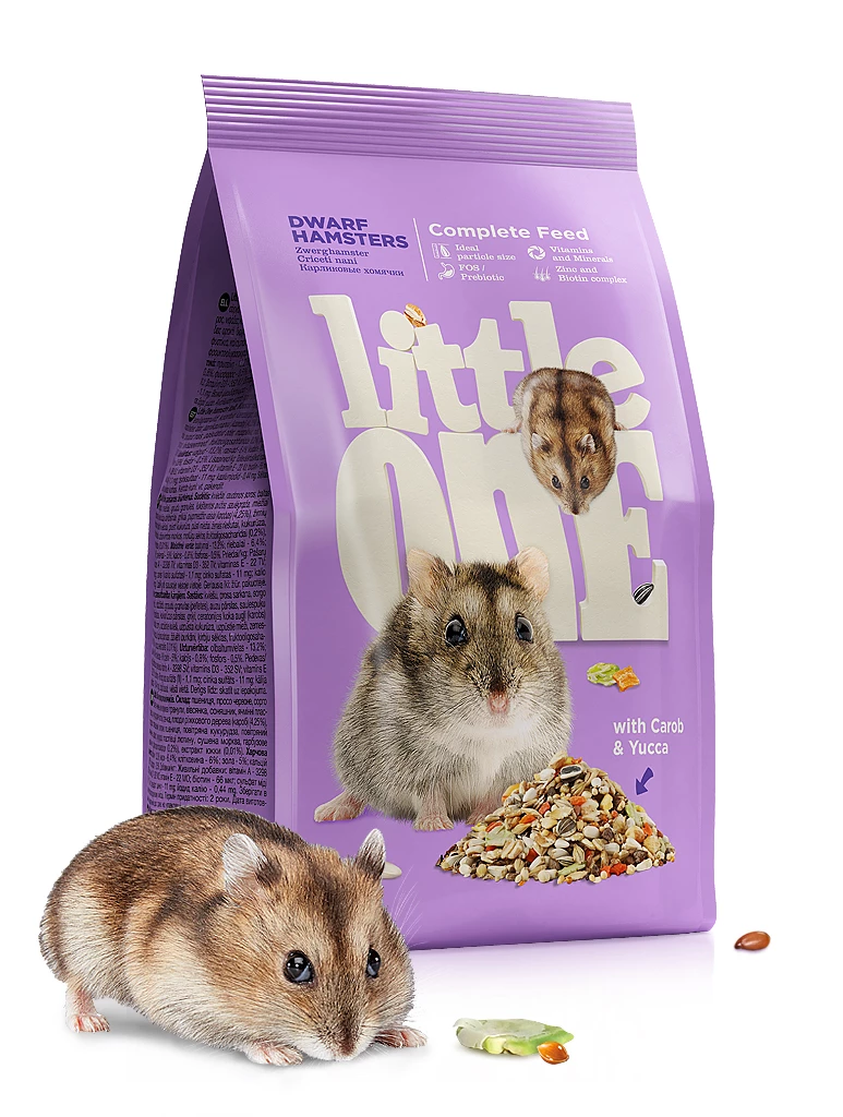 Понорационный корм с добавлением витаминов и минеральных веществ, сбалансированный в соответствии с индивидуальными пищевыми потребностями хомячков карликовых видов. Отличается очень ранообразным составом, но при этом не содержит сладких ингредиентов для профилактики диабета. Не содержит острых компонентов, а каждый ингредиент тщательно подобран с учетом размера питомцев.