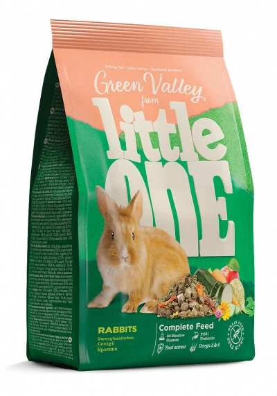 Little One корм из разнотравья «Зеленая долина» — корм для декоративных животных, в состав которого входит 60 разновидностей трав. Изготовленный с помощью специальной технологии холодного прессования, корм сохранил все витамины, минералы и другие ценные питательные вещества, входящие в состав растений. Корм богат длинными волокнами клетчатки, что обеспечит необходимый уход за зубами и правильное пищеварение у кроликов.