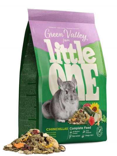 Little One корм «Зеленая долина» для шиншилл — корм для декоративных животных, в состав которого входит 60 разновидностей трав. Изготовленный с помощью специальной технологии холодного прессования, корм сохранил все витамины, минералы и другие ценные питательные вещества, входящие в состав растений. Корм богат длинными волокнами клетчатки, что обеспечит необходимый уход за зубами и правильное пищеварение у шиншилл.