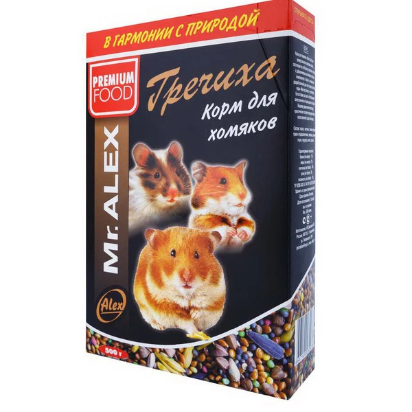 Корм для хомяков «Mr.ALEX» «Гречиха» - универсальная зерновая смесь, состоящая из отборных зерновых культур с добавлением высококачественных компонентов. Новый, специально разработанный для всех видов хомяков, корм отличается богатством состава и обеспечивает качественное и полноценное питание Вашему домашнему питомцу, практически соответствующее меню в естественной среде обитания.