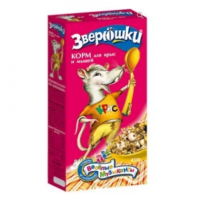 В нем есть все, что нужно для здоровой и активной жизни крыс и мышек: полезные и питательные семена, плющеный горох, ячменные и кукурузные хлопья, плоды рожкового дерева, хрустящие лакомства, вкусные овощи и орехи, минеральные вещества и витамины.