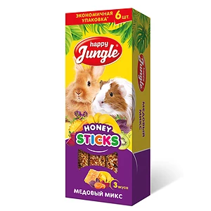 Лакомства для крупных грызунов Happy Jungle Палочки Медовый микс 6шт