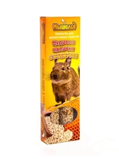 Лакомства для декоративных грызуновЗерновые полочки Мышильд разработаны компанией "Эльф" с учетом вкусовых и биологических особенностей декоративных грызунов.Они содержат полный комплекс питательных веществ и витаминов, необходимых Вашему животному для нормальной жизнедеятельности.Палочки содержат только натуральные продукты и являются излюбленным лакомством зверьков, способствуют стачиванию постоянно растущих передних резцов, а так же служат дополнительным развлечением в клетке.Каждая палочка Перрико несет здоровье, бодрость и красоту вашему зверьку, а Вам отличное настроение.Состав:Просо красное,Просо желтоеОвес,КунжутПшеничная мука,Мёд.