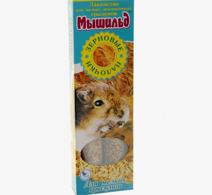 Для нормальной жизнедеятельности и размножения грызунам необходимо полноценное питание. Корм должен содержать в достаточном количестве и необходимой пропорции те элементы, которые расходуются в организме животного на образование энергии, рост новых клеток и тканей. Обеспечить домашнему любимцу полнорационное питание поможет Зерновые палочки для мелких грызунов, набор 2 шт, коробочка. Состав: красное просо, жёлтое просо, пшеничная мука, орехи.
