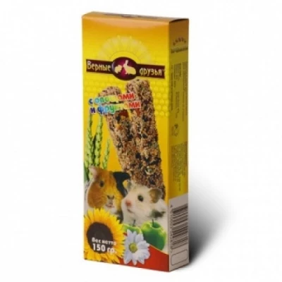 Рекомендации: Закрепите лакомство в клетке в подвешенном состоянии. Исключите попадание влаги на него. Медовые палочки "Верные друзья" придутся по вкусу грызуну и станут для него веселым развлечением.