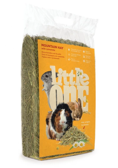 Горное сено с ромашкой Little One — ароматное, очищенное и высушенное; собрано в экологически чистых горных районах и обогащено цветами ромашки. Сено является основной составляющей рациона всех травоядных животных (кроликов, морских свинок, шиншилл, дегу), поэтому важно обеспечить его постоянное наличие в клетке.