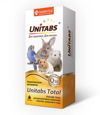 Кормовую добавку применяют для улучшения состояния кожи, шерсти и оперения, а также обогащения витаминами организма хорьков, декоративных кроликов, грызунов и птиц. Суточная норма ввода добавки зависит от веса животного. Unitabs Total — это витаминный комплекс для птиц и грызунов, который содержит коэнзим Q10 и все необходимые витамины для улучшения состояния кожи, шерсти, оперения и иммунитета питомца. Unitabs Total: ✔ Сокращает линьку ✔ Способствует активному росту шерсти и оперения ✔ Укрепляет иммунитет Добавляйте в рацион Unitabs Total: ✔ Во время сезонной линьки ✔ При непрерывной (круглогодичной) линьке ✔ Для улучшения состояния шерсти и оперения ✔ В период восстановления после болезни Активные компоненты: ● Витамины А, D, E необходимые элементы эпителия. Обеспечивают здоровье и гладкость кожи, обновление её клеток, способствуют активному росту шерсти и перьев. ● Витамины группы В участвуют в процессах регенерации кожи, стимулируют здоровый рост шерсти и оперения, улучшают нервную проводимость. ● Коэнзим Q10 способствует получению организмом энергии из углеводов и жиров, выступает в качестве антиоксиданта. Защищает клетки от пагубного воздействия свободных радикалов, способствует замедлению процессов старения, профилактике заболеваний сердечно-сосудистой системы, укреплению иммунной системы.