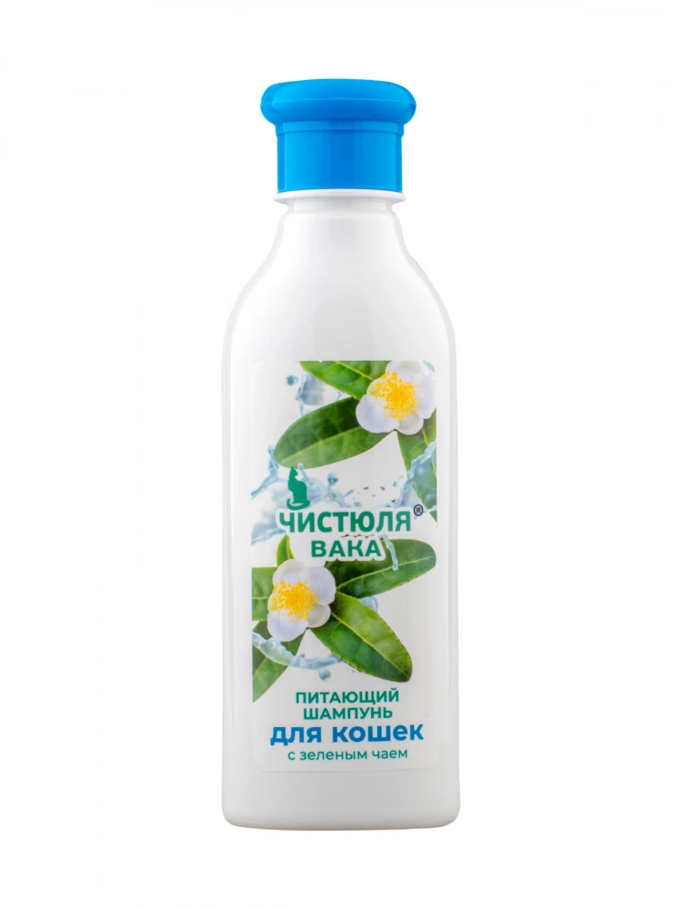 Шампунь для кошек всех пород с экстрактом зеленого чая питает кожу и шерсть, обеспечивая противовоспалительную и антибактериальную защиту.
