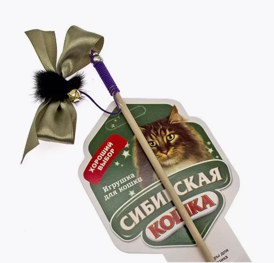 Дразнилка - удочка для кошек Сибирская кошка "Бантик", с мехом и погремушкой, на палочке. Вид игрушки для животного: Удочка - дразнилка; Предназначено для: Для кошек; Материал: Дерево, текстиль;