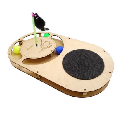 Игрушка для кошек GoSi Интерактив Овальная площадка с шариками и игрушка на пружине 49*27*3см