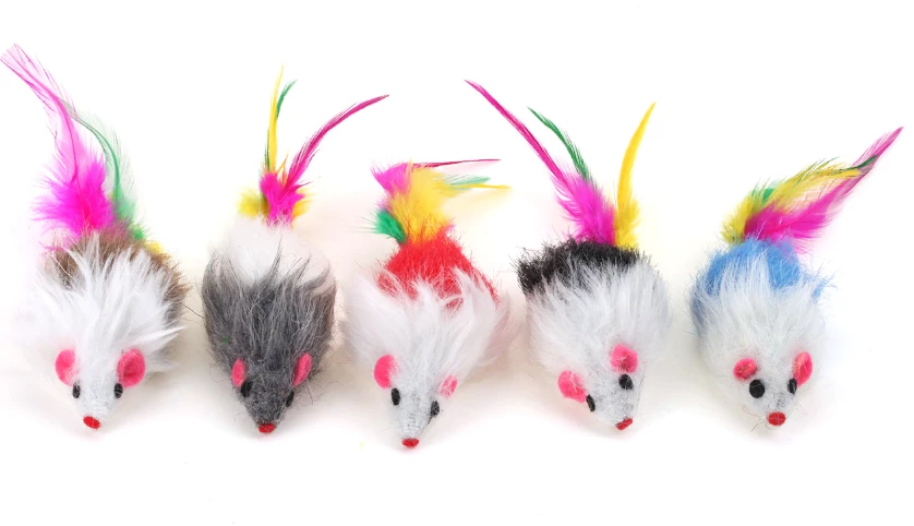 Игрушка для кошек Чистый котик Мышь с искусственным мехом и с пером 9 см