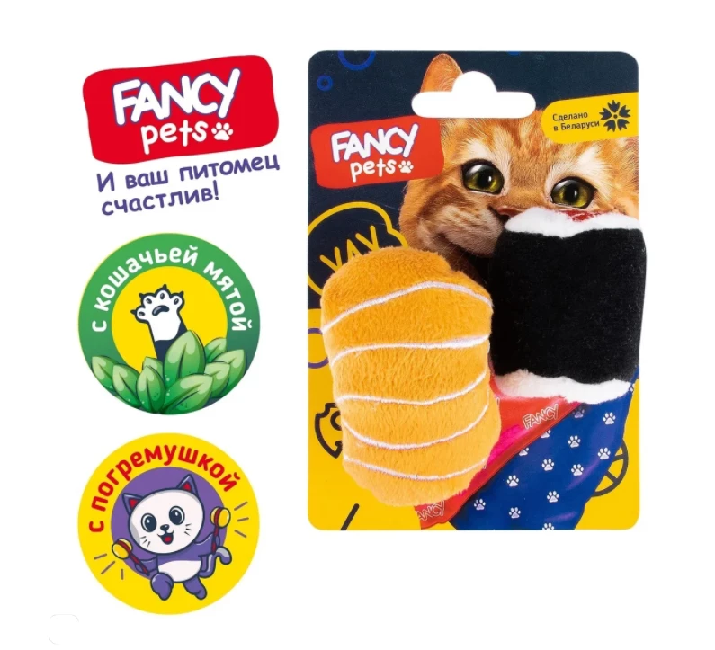 Угостите котика необычным лакомством: плюшевые «Суши» от Fancy Pets точно порадуют пушистика! Эти игрушки - оригинальная альтернатива простым мячикам: подойдет для любимой кошачьей игры – футбол. Внутри суши с лососем спрятана кошачья мята, внутри суши с нори – гремелка. Такой привлекательный дуэт займет питомца надолго!