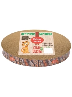 Когтеточка гофрокартонная РОДНЫЕ МЕСТА - модель Пень сосновый, толщина 4см., диаметр 35см. Стилизация соснового пня. Пропитана экстрактом кошачьей мяты, который особенно привлечет и понравится Вашему питомцу.