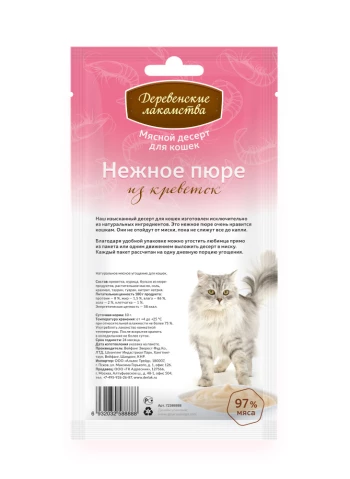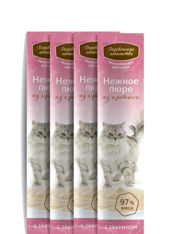 Нежнейшее пюре из креветок — изысканное угощение для самых любимых. Лакомство обогащено таурином, который не только усиливает природный вкус, но и способствует поддержанию здоровья сердца и иммунной системы.