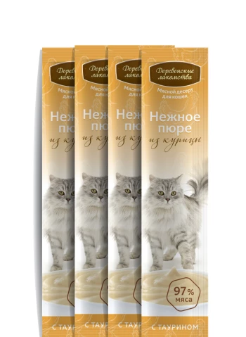 Нежнейшее пюре из курицы — изысканное угощение для самых любимых. Лакомство обогащено таурином, который не только усиливает природный вкус, но и способствует поддержанию здоровья сердца и иммунной системы.