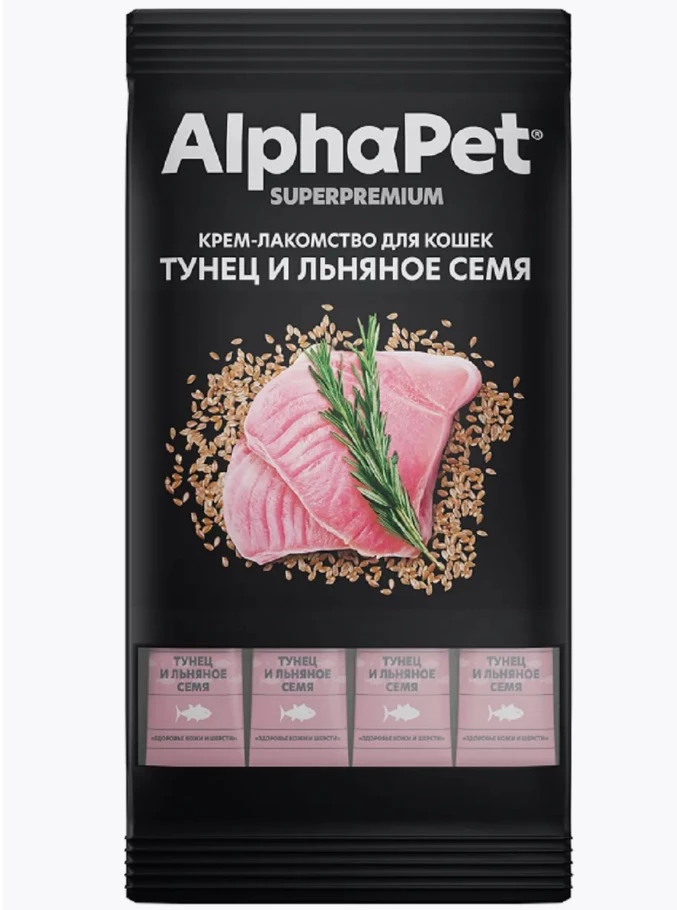 Лакомство для кошек AlphaPet ( Альфа Пет) Крем-лакомство Тунец/Семя льна 48г 4 шт