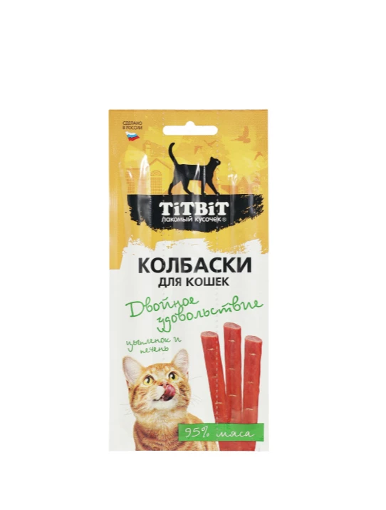 Колбаски для кошек Двойное удовольствие – это колбаски, которые благодаря сочетанию двойного вкуса нравятся кошкам вдвойне.