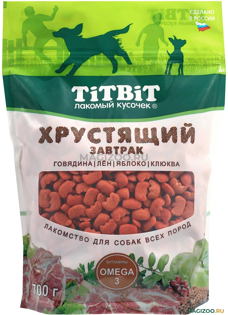 Лакомство TIT BIT Хрустящий завтрак для собак всех пород в виде снеков со вкусом говядины – побалуйте своего питомца вкусным и полезным лакомством! Ключевые особенности: Заряд энергией питомца каждое утро. Природные витамины и минералы. Легкоусвояемый завтрак с пониженной жирностью.