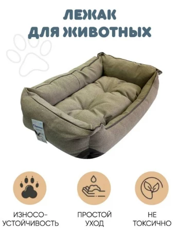 Бортик создает ощущение безопасности и обеспечивает поддержку головы и шеи. Съемная подушка без труда очищается от шерсти. Дно лежака не скользит благодаря специальному покрытию.