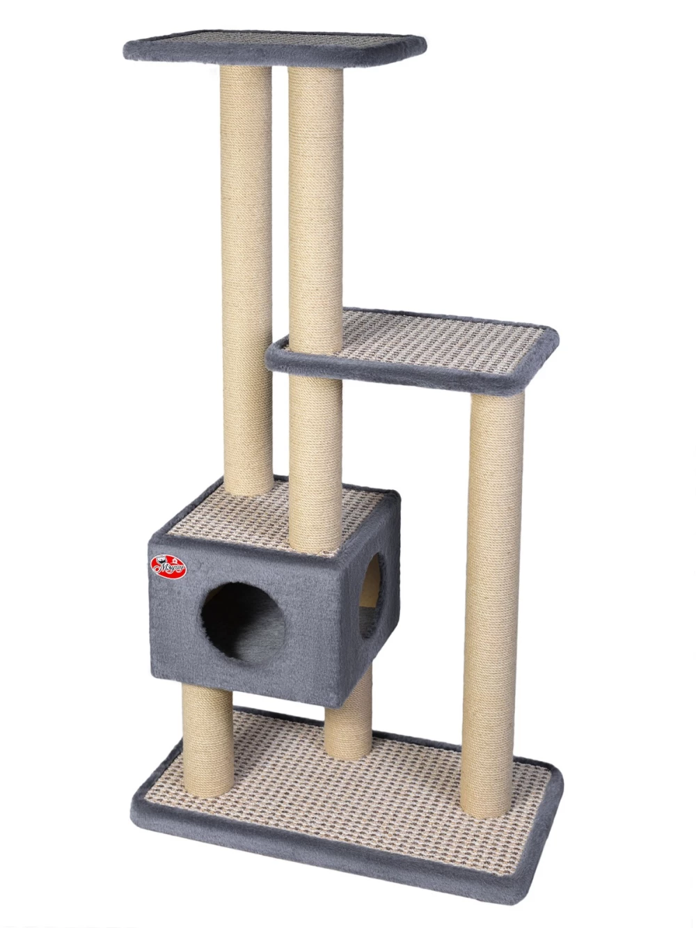 Спально-игровой комплекс для кошек - это удобный и функциональный комплекс для кошек, который имеет все необходимые элементы для активной игры и отдыха. Он выполнен из прочного материала, который обеспечивает надежную защиту от царапин и повреждений. Кошки очень ценят уют, поэтому им просто необходим личный уголок, где можно было бы провести время с комфортом вдали от посторонних глаз. У комплекса имеется закрытый домик, который особенно понравится пушистым ценителям уюта. Также комплекс имеет удобные площадки, которые станут местом для отработки прыжков, охоты и неспешного созерцания окружающего мира. Столбики-когтеточки прекрасно подойдут для удовлетворения естественной потребности кошки в стачивании коготков. Ваша кошка сможет не только поточить когти о когтеточку из джута, а также забраться повыше на полку для отдыха. Наш домик-когтеточка отлично впишется в наш интерьер, а также понравится вашему любимому домашнему животному.