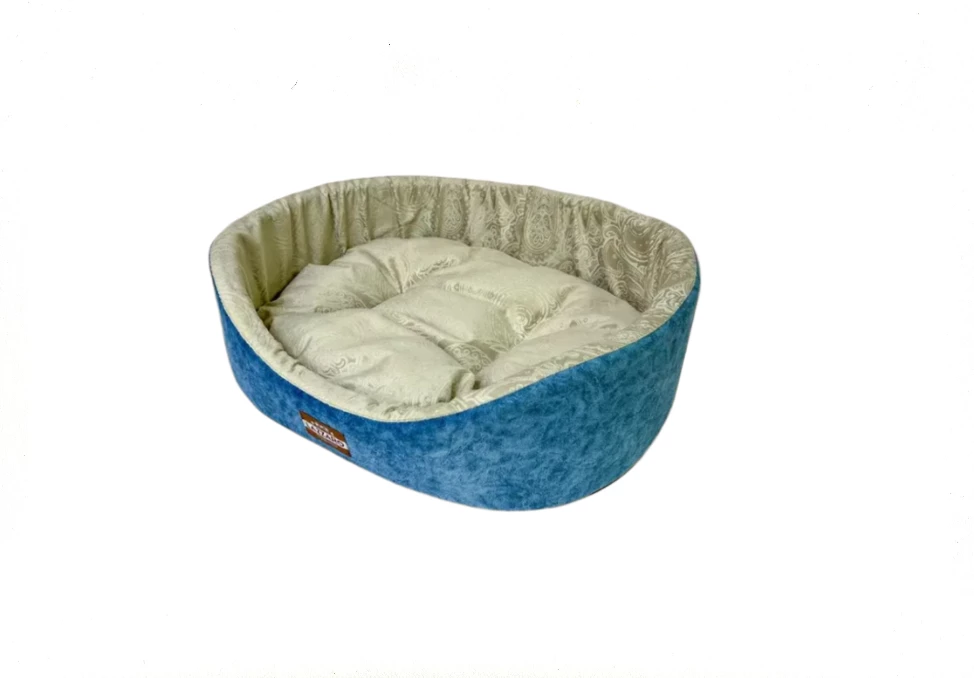Лежанка для кошек Lazzaro Премиум № 0 Модерн Синий/Узоры Светло-бежевый 38*26*16 см