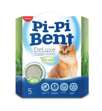 Комкующийся бентонитовый наполнитель для кошачьего туалета супер-премиум класса Pi-Pi Bent Deluxe Fresh Grass с новым оригинальным ароматом Fresh grass (Свежая трава), обладающий повышенной привлекательностью для животных. Чистый и легкий запах свежескошенной травы появляется при взаимодействии с жидкостью, и в сочетании с особыми поглощающими свойствами гранул наполнителя надежно блокирует и устраняет любые неприятные запахи в лотке. СУПЕРПРОЧНЫЙ КОМОК Специально подобранный оптимальный размер гранул обеспечивает образование особо прочного комка стабильной структуры. МОМЕНТАЛЬНОЕ ВПИТЫВАНИЕ Уникальная структура природного бентонита гарантирует максимально быстрое поглощение влаги. ОБЕСПЫЛЕН В технологическую схему производства включен этап очистки гранул от пыли. ПРИЯТНЫЙ АРОМАТ Чистый и легкий запах свежескошенной травы проявляется при взаимодействии наполнителя с жидкостью и защищает Ваш дом от неприятных запахов. Прошел добровольную и экологическую сертификацию.