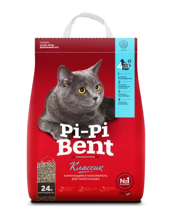 Pi-Pi Bent Классик впитывает большое количество влаги, образуя крепкие комки. На протяжении всего времени использования Pi-Pi Bent Классик эффективно нейтрализует неприятные запахи.