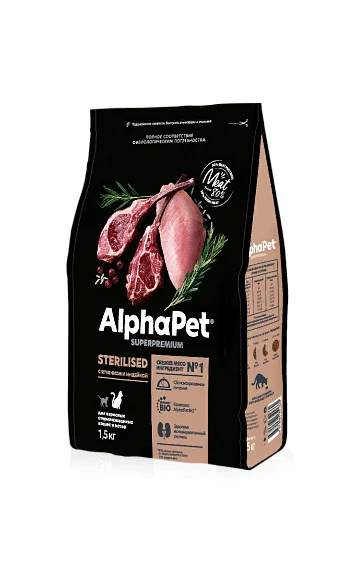 AlphaPet С ягненком и индейкой для взрослых стерилизованных кошек и котов