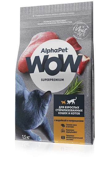 Сухой корм для стерилизованных кошек AlphaPet WOW Sterilized Индейка/потрошки 1,5кг