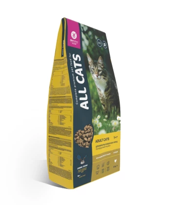 ALL СATS содержит аминокислоту таурин, которая помогает предотвратить дегенерацию сетчатки глаз, а также укрепляет иммунную систему кошки. 347 ккал на 100 г злаки, мясо и продукты животного происхождения, овощи, масла и жиры, рыба и рыбные субпродукты (источник Омега 3 и Омега 6 жирных кислот), минеральные вещества и витамины. Указанные нормы кормления представлены в качестве рекомендаций и должны быть скорректированы в соответствии с размером, возрастом и уровнем активности вашей кошки. Переход с предыдущего рациона рекомендуется осуществлять постепенно, небольшими порциями, в течение 3 до 8 дней увеличивая количество корма до нормы. В возрасте 45 недель можно начинать подкармливать котят. Для котят рекомендуется смешивать корм с теплой водой или овощным отваром, постепенно снижая увлажнение корма. Котята должны принимать пищу от 3 до 5 раз в день. Чем меньше возраст котенка, тем больше приемов пищи ему необходимо. Продукт готов к употреблению.