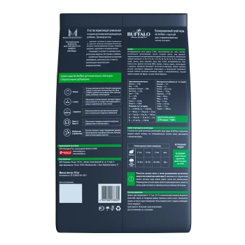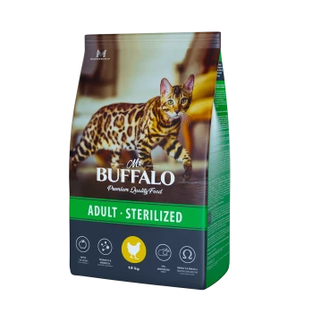 Полнорационный сухой корм Mr. Buffalo разработан с учётом потребностей стерилизованных кошек и кастрированных котов, включает все необходимые питательные вещества для поддержания жизненных сил, здоровья мочевыделительной системы, поддержания оптимального веса и мышечной массы питомца. Сбалансированный уровень минералов предотвращает развитие камней и поддерживает правильную функцию почек.
