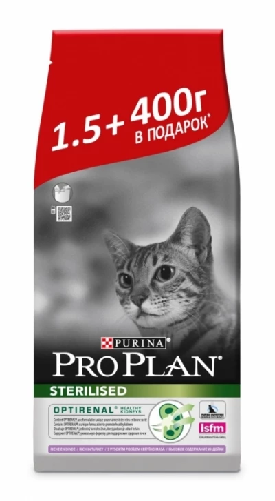 Для поддержания здоровья стерилизованных кошек. PRO PLAN Sterilised сочетает все основные питательные вещества, включая витамины A, C и E и жирные кислоты омега-3 и омега-6, в богатой белками, нежирной рецептуре, которая также помогает обеспечить сбалансированный уровень pH мочи.