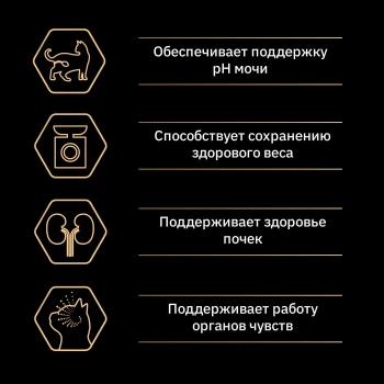 Содержит формулу OPTISENSES - особую комбинацию питательных веществ, таких как аргинин, жирные кислоты омега-3, витамины группы В и антиоксиданты для поддержания органов чувств и защиты когнитивной функции мозга кошек. Поддерживает здоровье мочевыделительной системы у кастрированных кошек, подверженных повышенному риску развития мочекаменной болезни. Помогает поддерживать идеальный вес тела благодаря точному балансу белков, жиров и углеводов. Высокое содержание белка и низкое содержание жира.