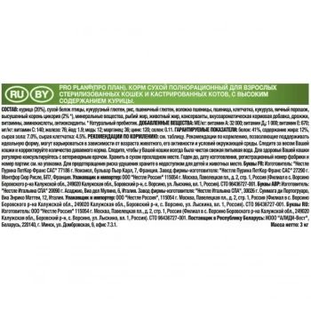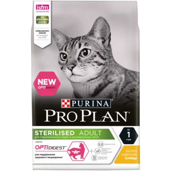 Для поддержания здоровья стерилизованных кошек. PRO PLAN Sterilised сочетает все основные питательные вещества, включая витамины A, C и E и жирные кислоты омега-3 и омега-6, в богатой белками, нежирной рецептуре, которая также помогает обеспечить сбалансированный уровень pH мочи.