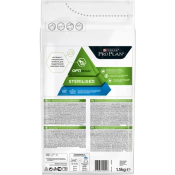 Для поддержания здоровья стерилизованных кошек. PRO PLAN Sterilised сочетает все основные питательные вещества, включая витамины A, C и E и жирные кислоты омега-3 и омега-6, в богатой белками, нежирной рецептуре, которая также помогает обеспечить сбалансированный уровень pH мочи.