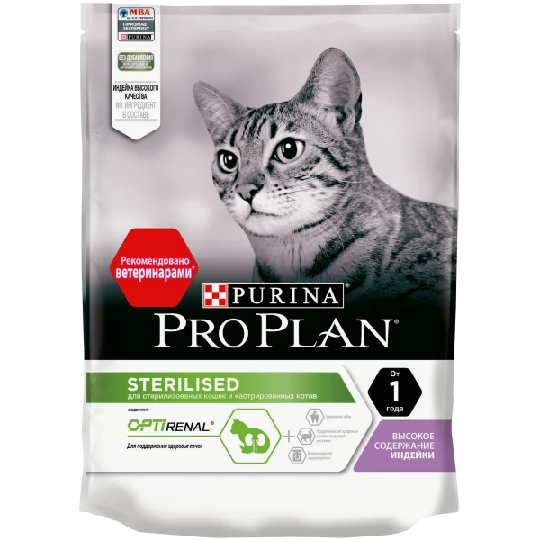 Для поддержания здоровья стерилизованных кошек. PRO PLAN Sterilised сочетает все основные питательные вещества, включая витамины A, C и E и жирные кислоты омега-3 и омега-6, в богатой белками, нежирной рецептуре, которая также помогает обеспечить сбалансированный уровень pH мочи.