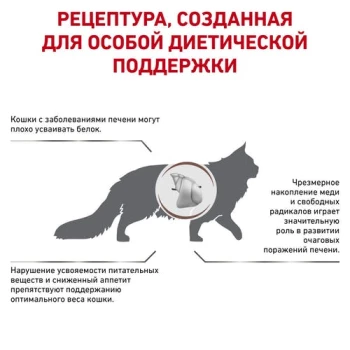 Сухой корм ROYAL CANIN® HEPATIC – полнорационный диетический корм для кошек, преднаначенный для поддержания функции печени при хронической печеночной недостаточности. Умеренное содержание высококачественных белков и высокое содержание незаменимых жирных кислот.