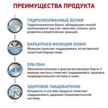 РЕКОМЕНДАЦИИ: Посоветуйтесь с вашим ветеринарным врачом по поводу целесообразности использования данного корма. Курс применения сухого корма HYPOALLERGENIC — 3–8 недель. Если симптомы непереносимости исчезают, можно употреблять этот корм в течение всей жизни животного.