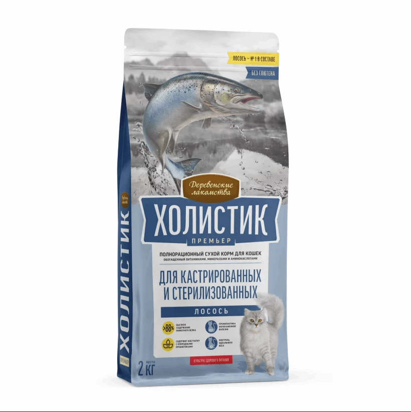 Сухой корм для кошек Деревенские лакомства Холистик Премьер для крупных пород Тунец 2кг
