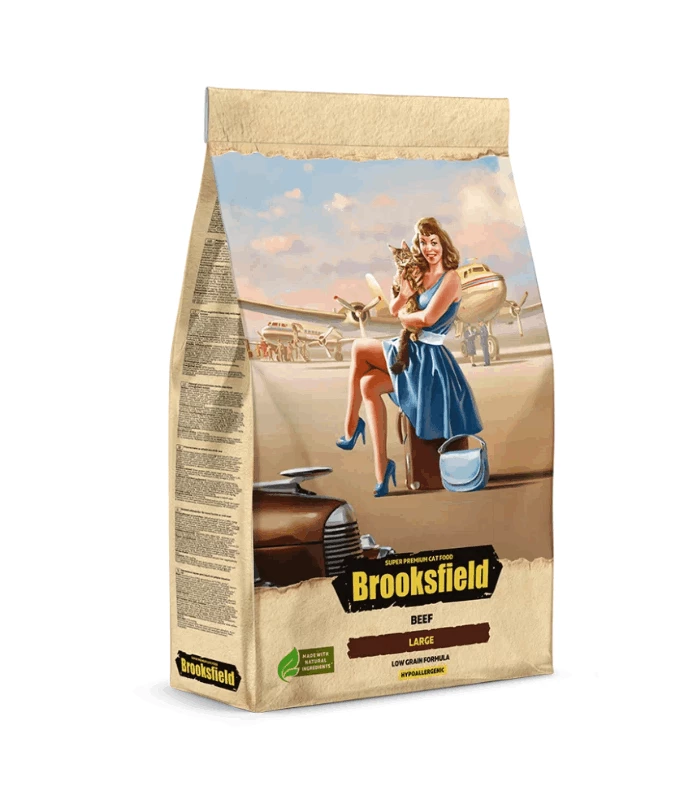 Полнорационный низкозерновой корм BROOKSFIELD LARGE CAT на основе дегидрированной и свежей говядины обеспечивает высокую потребность кошек крупных пород белком и питательными веществами, поддерживает здоровье опорно-двигательного аппарата животного за счет баланса в составе кальция, фосфора, глюкозамина и хондроитина. В корме BROOKSFIELD LARGE CAT отсутствуют соя, пшеница и кукуруза, способные вызвать аллергические реакции. Оптимальное количество таурина и жирных кислот (EPA и DHA) положительно влияют на работу сердечной мышцы. Специальный для кошек крупных пород размер гранул позволяет питомцам правильно пережевывать пищу, способствуя профилактики зубного камня и здоровью мышц челюсти.
