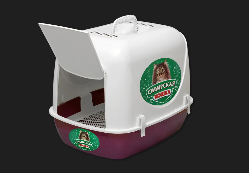 Туалет для кошек Сибирская кошка Альбус закрытый с сеткой зелёный/малиновый