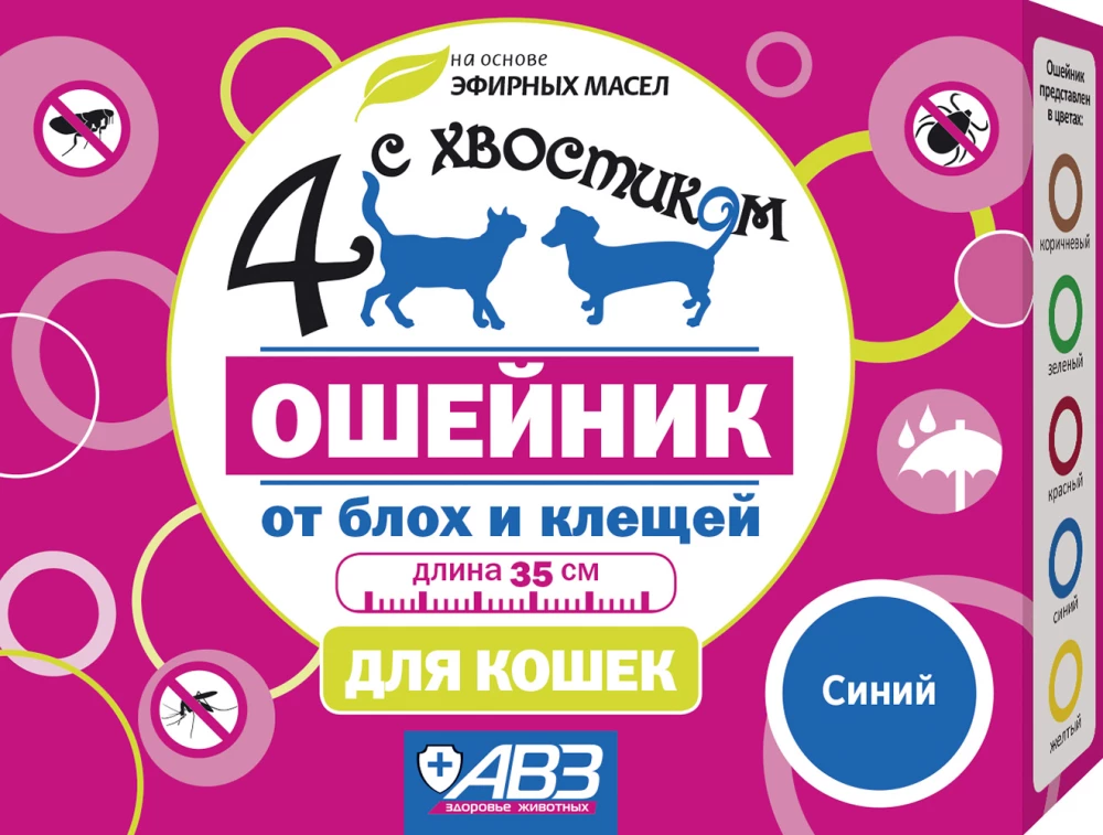 Ошейник для кошек Четыре с хвостиком Синий против блох и клещей 35см