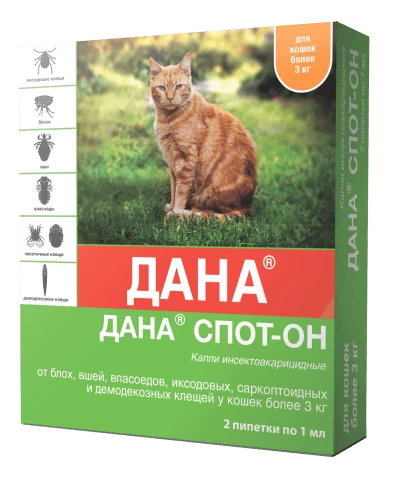 Капли на холку для кошек от 3кг Дана Спот-Он против блох и клещей (2 пипетки)
