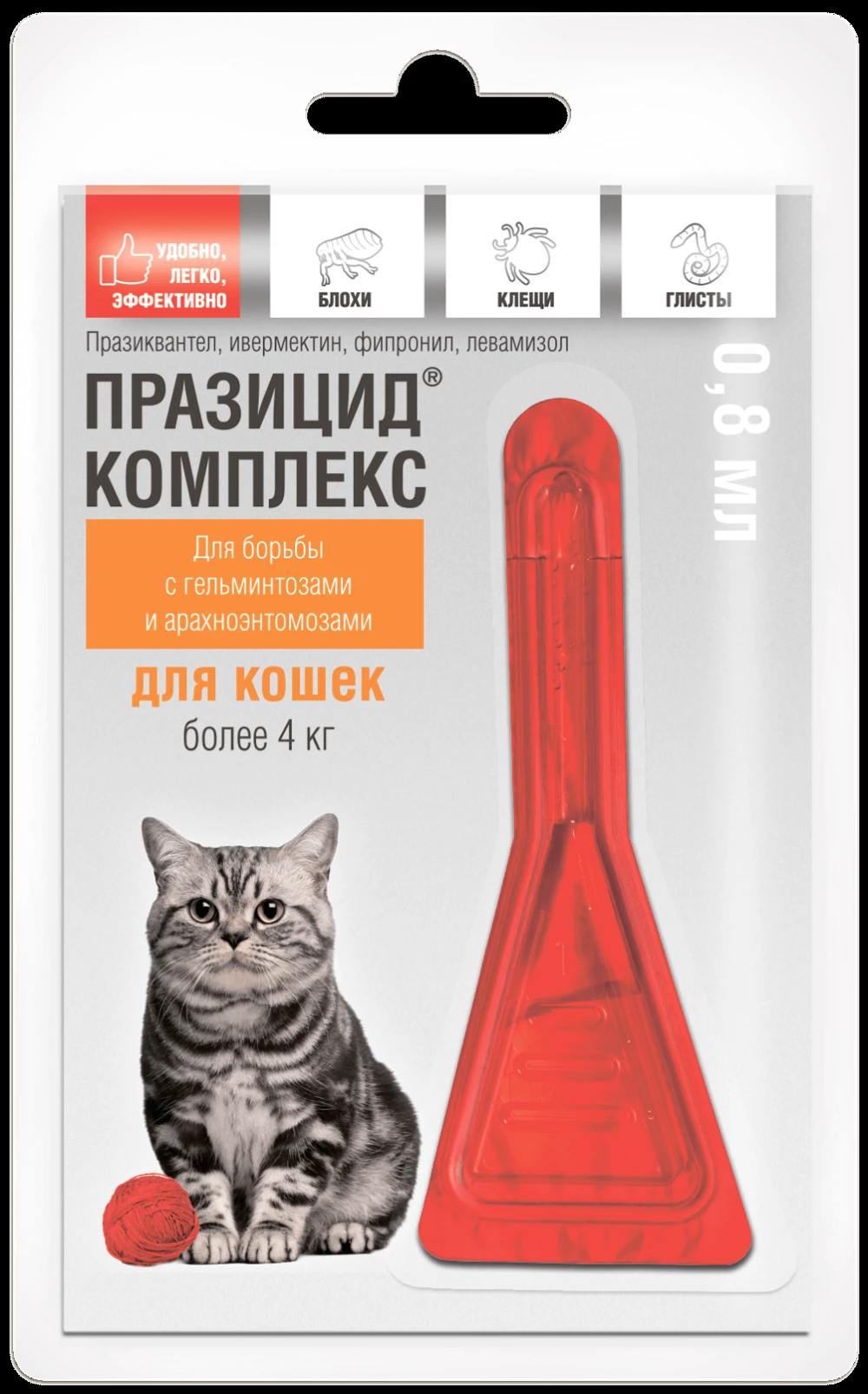 Празиквантел — 102 мг/мл, ивермектин — 24 мг/мл, левамизол — 25 мг/мл, тиаметоксам — 35 мг/мл, фипронил — 100 мг/мл вспомогательные вещества до 1 мл.