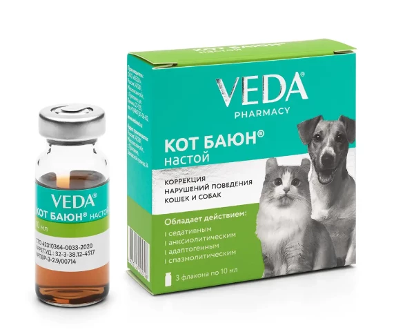 Кот Баюн настой применяют, начиная с 10-месячного возраста, для коррекции поведения кошек и собак: агрессии (по отношению к хозяину; связанной с борьбой за доминирование или обусловленной страхом), фобий (страха перед шумом; боязни расставания; страха и возбуждения перед выставками и при транспортировке), нарушения сексуального поведения (половой агрессии; имитации покрытия; криков кошек во время половой охоты; чрезмерного беспокойства при ложной щенности; мечения в квартире), гиперактивности, беспричинного постоянного лая, навязчивого вылизывания, копрофагии.
