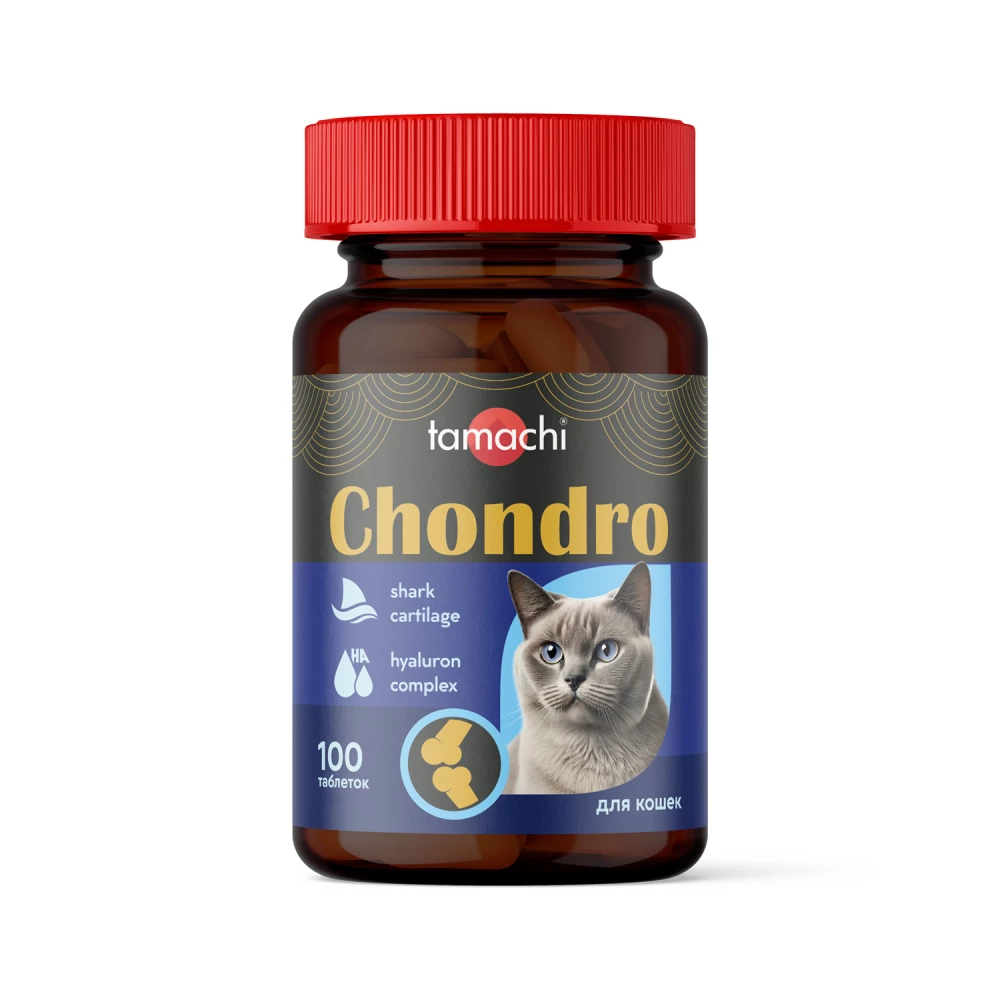 Tamachi Chondro — это витаминно-минеральный комплекс для поддержания функций опорно-двигательного аппарата кошек. Уникальная формула с акульим хрящом и гиалурон комплексом стимулирует естественные процессы восстановления костных тканей, укрепляет суставы, связки и сухожилия. Применение: Кормовую добавку применяют ежедневно, вводят в корм или задают перед кормлением перорально с руки из расчета 1 таблетка массой 0,5 г на 5 кг массы тела. Курс применения составляет 3 месяца. Возможно повторное применение при необходимости. Состав: Сыворотка молочная сухая деминерализованная подсырная, минеральный премикс, морской коллаген, витаминный премикс, метилсульфонилметан, глюкозамин гидрохлорид, акулий хрящ, гиалуронат натрия, сублимированная печень говяжья или мясопродукты сушеные, аэросил А, фукоидан, сквален, стеарат кальция.